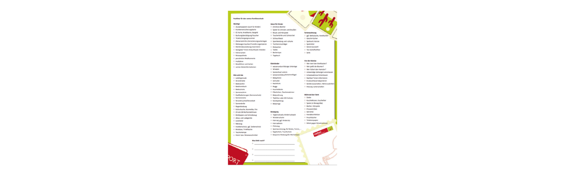 Unser Tipp: Nehmt die Packliste mit! So könnt ihr vor der Heimreise überprüfen, ob ihr auch wieder alles eingepackt habt, was ihr mitgebracht habt.