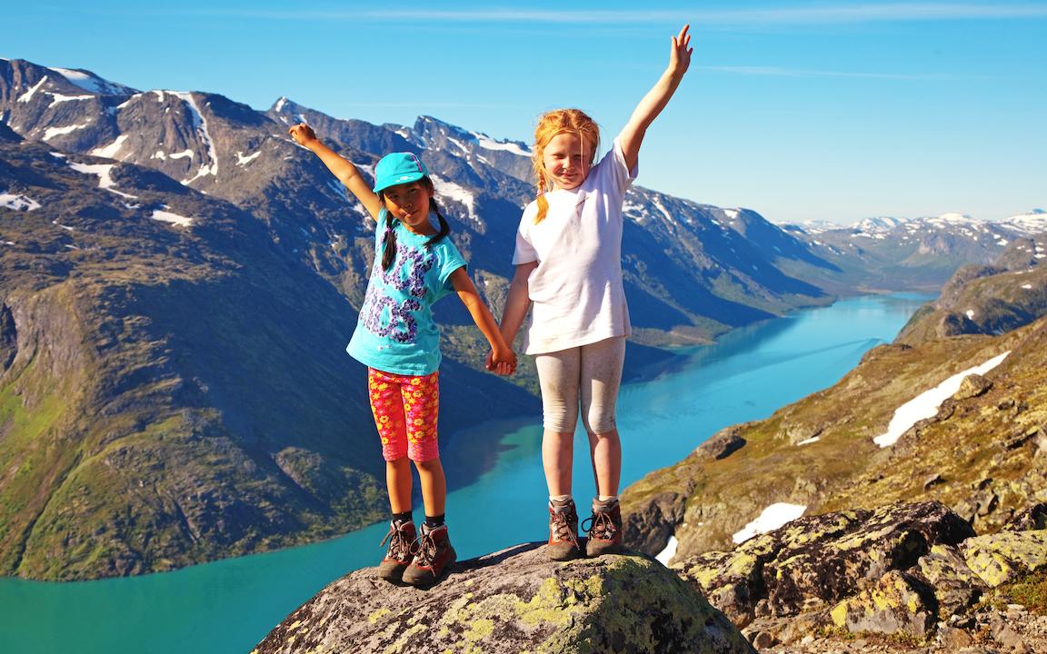 „Unsere Stammgäste schätzen vor allem, dass sie spontan loslaufen können und dann dort picknicken, wo sie es gerade am schönsten finden“, erzählt Marit. Gleich drei für Kinder geeignete Wanderungen durch Norwegens wilde Natur starten direkt vor den Türen des Fjellpark. Eine gute halbe Autostunde entfernt, in Vaset (37 km), liegt der Einstieg zum Mjølkevegen: Die „Milchroute“ gehört zu den schönsten Fahrradstrecken Norwegens und verbindet auf 250 Kilometern Länge Dörfer und bewirtschaftete Almen. Dort stärken sich die Besucher mit den selbst erzeugten Spezialitäten der Berghöfe und junge Gäste kraulen Ziegen, Pferde und Kühe hinter den Ohren. Fahrräder können Sie in Vaset ausleihen (Entgelt). Klingt nach dem perfekten Abenteuer in Norwegen mit Kindern!