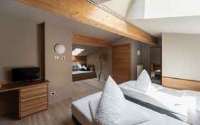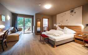 Wer in Bad Ratzes ankommt, fühlt sich gleich wie zu Hause. Schon am Empfang spürt man die Warmherzigkeit von Gastgeberin Petra Mutschlechner und ihrem Team. Die Räumlichkeiten präsentieren sich stilvoll, geprägt von Elementen des Jugendstils in den zahlreichen Aufenthaltsräumen bis hin zur modernen Innenarchitekur in den neuen Suiten. Das Haus verfügt über 49 Zimmer in verschiedener Ausprägung, egal ob im Urlaub als Alleinreisende, Paare oder Familien mit Kindern, es findet sich stets die geeignete Lösung: Doppelzimmer mit Schlernblick, 2-stöckige Suiten für große Familien, neue Suiten mit Zirbenholzsauna. Der Blick geht immer in Richtung Natur, ob zum Ritten, zum Schlermassiv oder auf die zauberhafte Blumenwiese.