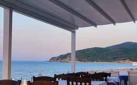 Das Hotel bietet 19 landestypische Zimmer sowie kleine und große Appartements, verteilt auf drei benachbarte Häuser – zwei direkt an der Strandstraße, eines etwas zurückversetzt. Alle Unterkünfte verfügen über direkten oder seitlichen Meerblick. Morgens starten Sie entspannt am Frühstücksbuffet direkt am Meer in den Tag. Mittags und abends genießen Sie frische, griechische Küche im hoteleigenen Restaurant – mit Zutaten aus der Region.