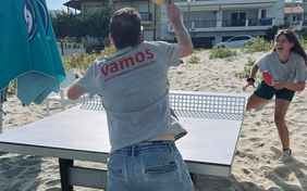 Im vamos Jugendprogramm (ab 12 Jahren) steht in den Pfingst-, Sommer- und Herbstferien vor allem eines im Mittelpunkt: Strand, Bewegung und Gemeinschaft. Ob bei Beachvolleyball, Wasserball oder einer Klippenwanderung – hier ist Action garantiert. Ein Treffpunkt für Jugendliche und Eltern ist die hauseigene Strandbar, besonders lebendig beim wöchentlichen vamos Familienabend, etwa bei einem Table-Quiz am Meer. Der Beach-Treff dreimal pro Woche bringt Schwung an den Strand – für Jugendliche und Erwachsene gleichermaßen. Ein weiteres Highlight: Gastgeber Grigorios lädt alle vamos Familien einmal pro Woche zu einem gemeinsamen Abendessen ein (gegen Entgelt) – eine schöne Gelegenheit zum Kennenlernen und Genießen.