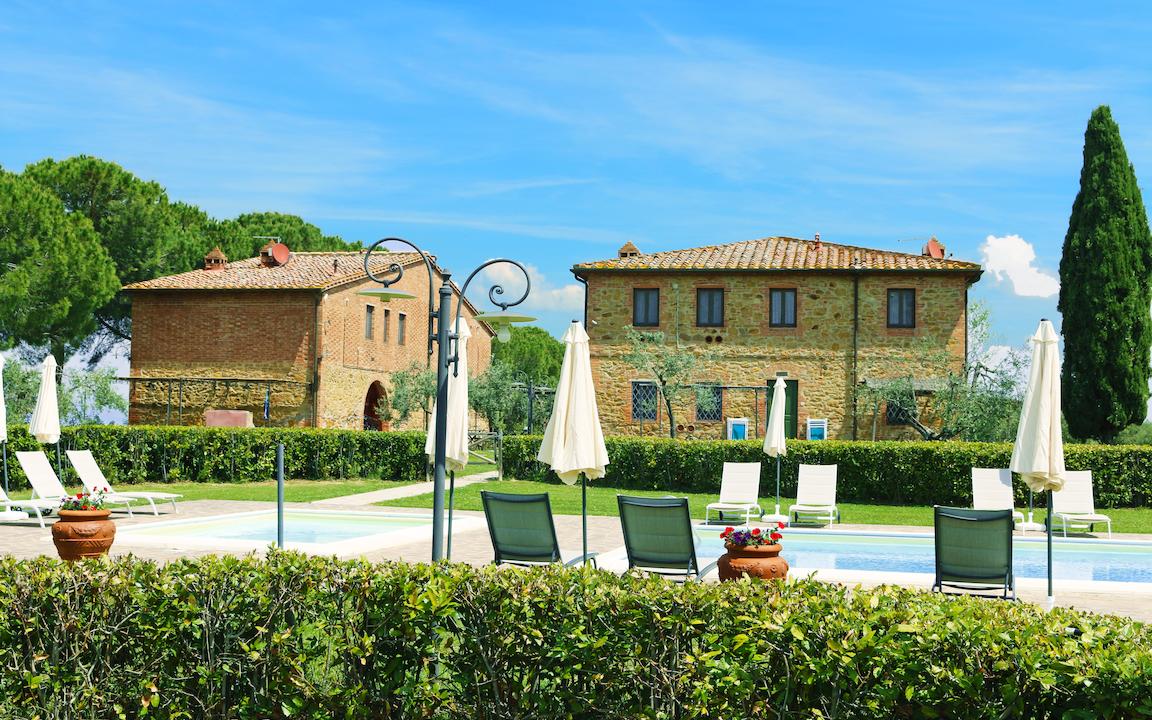 Auf dem weitläufigen Gelände wohnen Sie gemeinsam mit anderen Familien in einem der ruhig gelegenen Gutshöfe. Sanftes Sonnenlicht dringt tagsüber durch die traditionell schmalen Fenster in die Unterkünfte. Von dort genießen Sie einen herrlichen Blick über die Hügel der Umgebung. Pool und Spielplatz sorgen für Abwechslung bei Eltern und Kindern. Im Zentrum des Weinguts befinden sich die Rezeption und das Restaurant. Hier erstehen Sie Wein und Olivenöl von der Azienda und versüßen Ihnen Ihren Urlaub in der Toskana. Die toskanische Küche können Sie sich hier auch schmecken lassen.