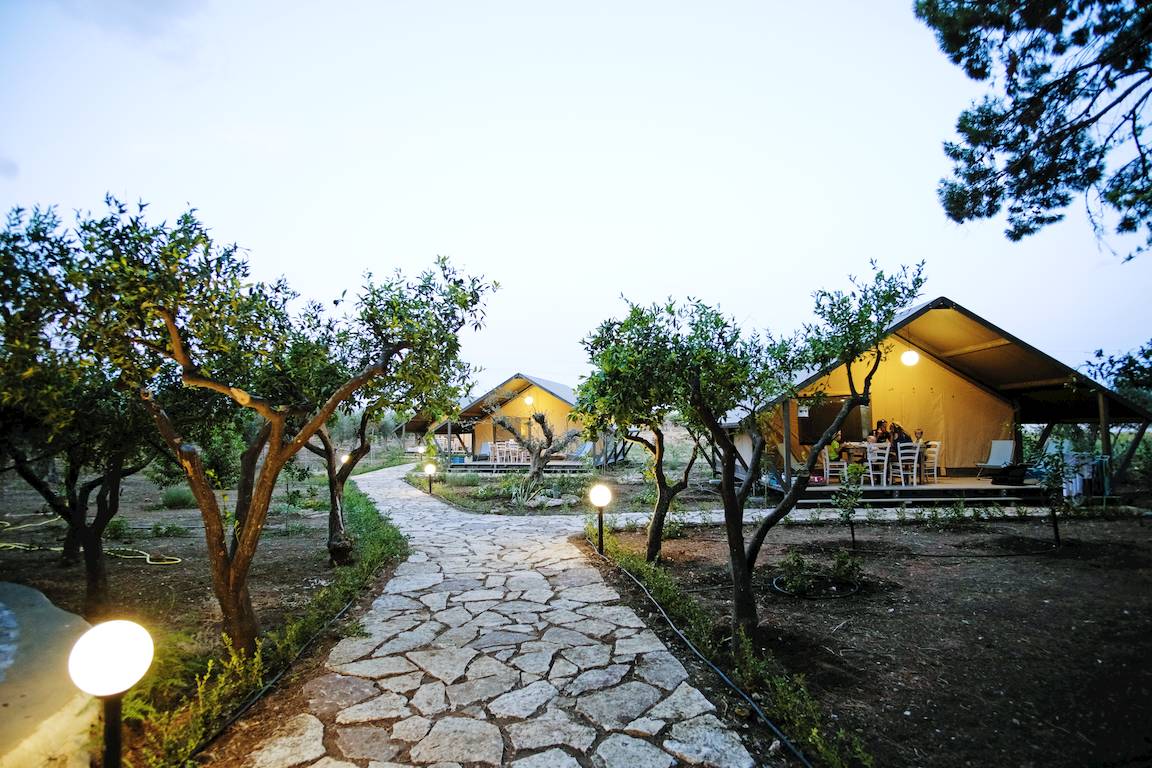 Die 14 Appartements des Agriturismo bieten je ein oder zwei Schlafzimmer, Wohnküche und Terrasse mit Gartenmöbeln. Sie verteilen sich um den arabisch anmutenden Innenhof und sind einfach, aber typisch sizilianisch eingerichtet. Alternativ wohnen Sie in einem der drei Glamping-Zelte. Hier lassen sich das offene Elternschlafzimmer mit Doppelbett und der Kinderbereich mit Etagenbett durch einen Vorhang vom Wohnbereich mit Kochnische trennen. Auch dank Terrasse und modernem Bad müssen Sie auf Komfort nicht verzichten. Wer aktiv sein will, schwimmt im Pool (7 × 14 m) oder spielt Fußball, Volleyball oder Boccia. Besonders schön ist ein Spaziergang durch den Garten, wo Ihnen unter Schatten spendenden Baumriesen und Kakteen vielleicht die Hunde, Katzen, Esel oder anderen tierischen Bewohner begegnen.