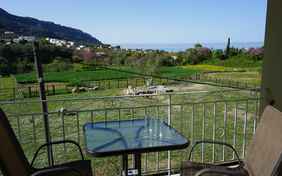 Insgesamt 20 Studios, große und kleine Appartements sind in drei Häusern im Garten der Farm untergebracht. Die Wohneinheiten sind schlicht, aber angenehm mit Holzmöbeln eingerichtet und haben alle einen Balkon oder eine Terrasse. Nur wenige Schritte sind es zur hübschen Taverne. Hier kommt für die Halbpension und für kleine Mittagsgerichte meist auf den Tisch, was von der Farm oder aus der Region stammt.