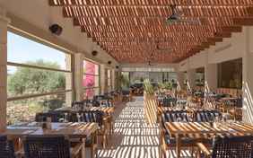 Genießen Sie ein reichhaltiges Frühstücksbuffet mit kretischen Spezialitäten und frischen Smoothies. Das neu gestaltete Restaurant bietet abends ein authentisch griechisches Buffet mit vegetarischen Optionen. An drei Live-Cooking-Stationen werden Fisch, Fleisch und Desserts zubereitet. Einmal wöchentlich erwartet Sie ein Abendmenü im à la Carte-Restaurant mit Zutaten aus dem hoteleigenen Gemüsegarten und Olivenhain.