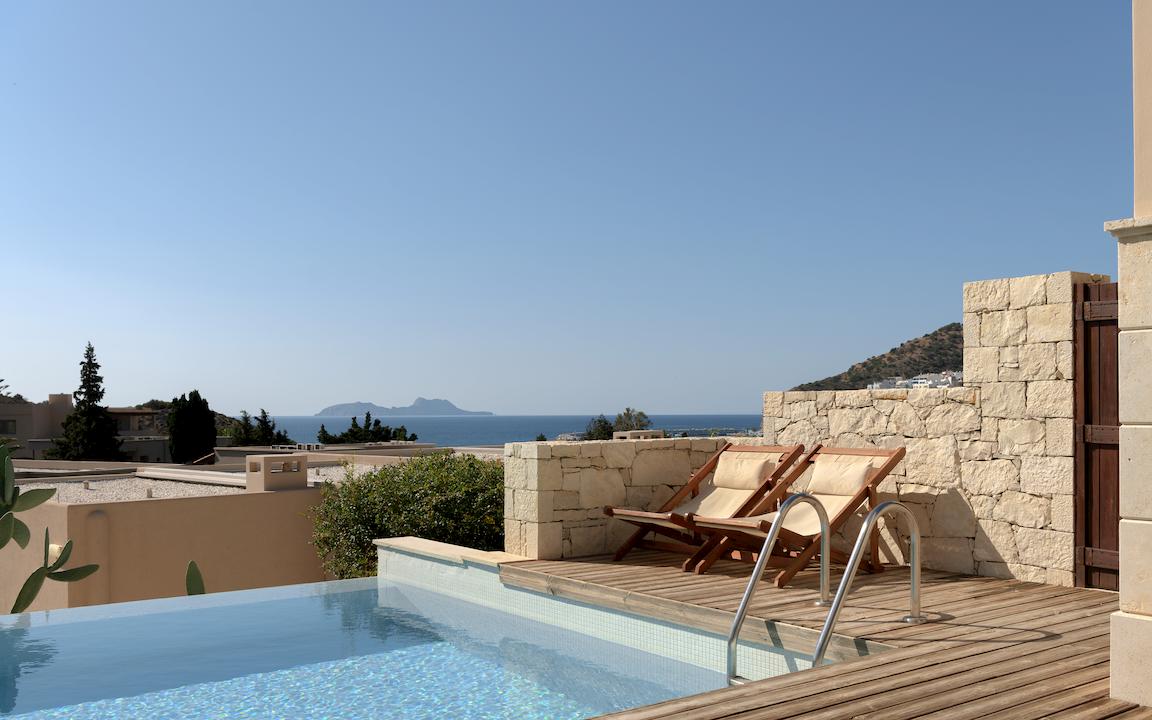 Ein gepflegter Garten mit Palmen und Olivenbäumen umgibt die 13 Häuser des Hotels. Ein klares, frisches Design, liebevoll ausgewählte Möbel und Accessoires in den Farben der Natur, moderner Komfort: Die für Sie reservierten Zimmer und Suiten zeichnen sich durch stilvolle Gemütlichkeit aus. Alle verfügen über einen Balkon oder eine Terrasse, teilweise mit Meerblick. Ob Sie mit einem oder vier Kindern anreisen – hier gibt es für jede Familie den richtigen Zimmertyp. Besonders exklusiv wohnen Sie in den Poolsuiten, die über viel Platz, eine stilvolle Ausstattung und einen eigenen privaten Pool verfügen