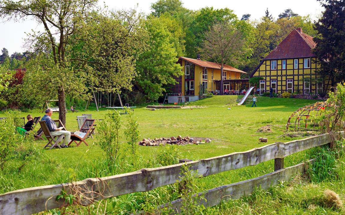 Das gemütliche Bio-Hotel Kenners LandLust im Wendland liegt am Rand eines der größten zusammenhängenden Waldgebiete Norddeutschlands, der Göhrde. Es ist wie gemacht für Eltern, die Ruhe suchen, und für Kinder, die gern draußen toben und die Natur entdecken. Gleich hinter dem Haus erstreckt sich eine große Spielwiese bis zum Mühlenbach. Wer seinen Urlaub ohne schlechtes Gewissen verbringen möchte, ist hier richtig, denn im Bio-Hotel wird Nachhaltigkeit gelebt: Barbara und Kenny Kenner haben ein altes Fachwerkhaus nach baubiologischen Kriterien renoviert und durch einen lichten Anbau mit Teeküche, Spielzimmer und Speiseraum erweitert. Dafür erhielt das Hotel als erstes in Niedersachsen das Prädikat „klimaneutral“. Barbara Kenner erklärt: „Als wir hier anfingen, waren wir die Spinner, heute sind wir die Trendsetter.“