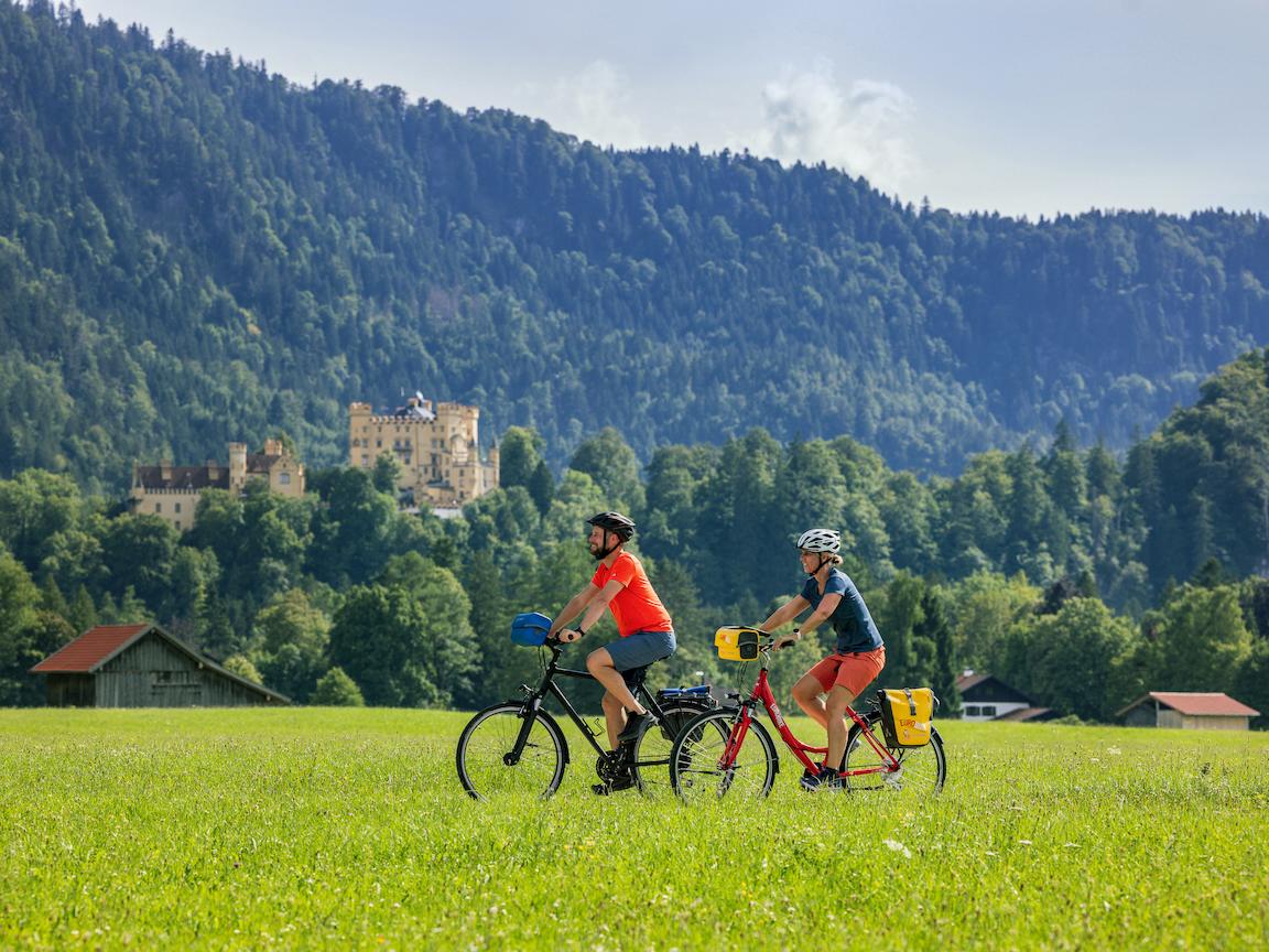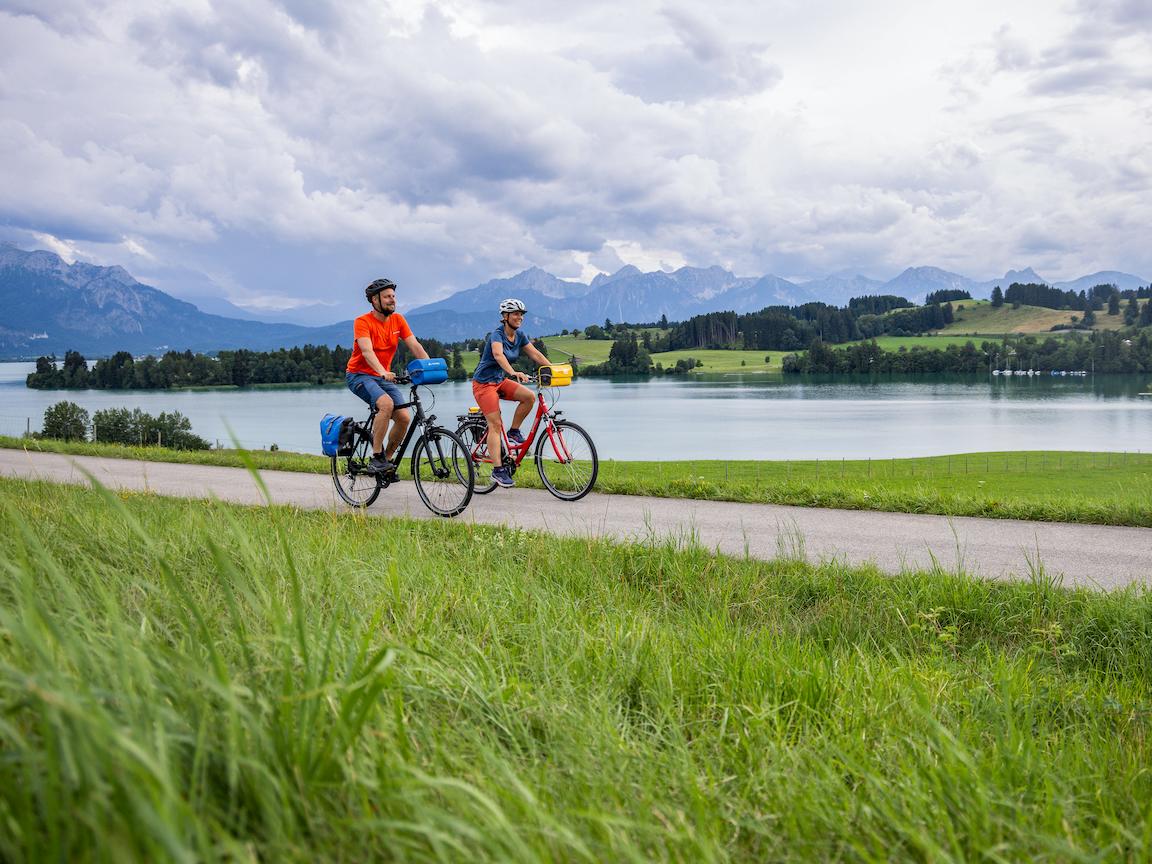 Heute führt euch die Strecke in eine Landschaft, die von Geschichte und Aussicht geprägt ist. Schon nach wenigen Kilometern erscheint Schloss Neuschwanstein hell über dem Tal, mit klaren Linien und eindrucksvoller Präsenz. Gleich daneben liegt Schloss Hohenschwangau, umgeben von Wiesen und sanften Hängen. Auf dem Weg zum Alpsee verändert sich die Stimmung: Die Geräusche werden leiser, das Licht spiegelt sich im Wasser und die Berge rücken näher. Am Ufer bleibt Zeit für eine Pause. Ruhen, Schauen und Durchatmen. Danach geht es weiter zu eurer Unterkunft, einem tollen 3-Sterne-Hotel mit Frühstück, ein ruhiger Abschluss für einen Tag voller Eindrücke.