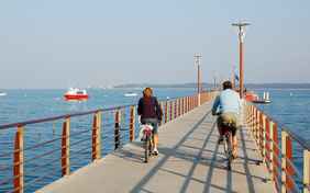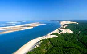 Die Gironde verfügt über eines der besten Radwegenetze Frankreichs. Der „Eurovelo 1“ führt Sie einmal rund um das Becken von Arcachon! Sie werden großartige Strände am Atlantik sehen, wild und frei, die im Kontrast zu den sanfteren Uferradwegen von Arcachon und seinen Café- und Restaurantterrassen stehen. Und dann gibt es wieder Strände, ruhiger, im Schutz des Meeresarms der Bucht. Die Route führt Sie von einem kleinen Hafen zum nächsten, wobei die Farben immer wieder wechseln. Und sie bringt Sie in den weitläufigen Vogelpark und das Naturschutzgebiet der Salzwiesen. Sie werden es genießen, durch den Kiefernwald zum Cap Ferret zu gleiten, aber damit ist die Geschichte noch nicht zu Ende. Die Anlegestelle und das Boot, das Sie abholt, die Seeluft bei der Überfahrt und das herrliche Panorama der Bucht von Arcachon, das gerade in Sicht kommt....