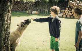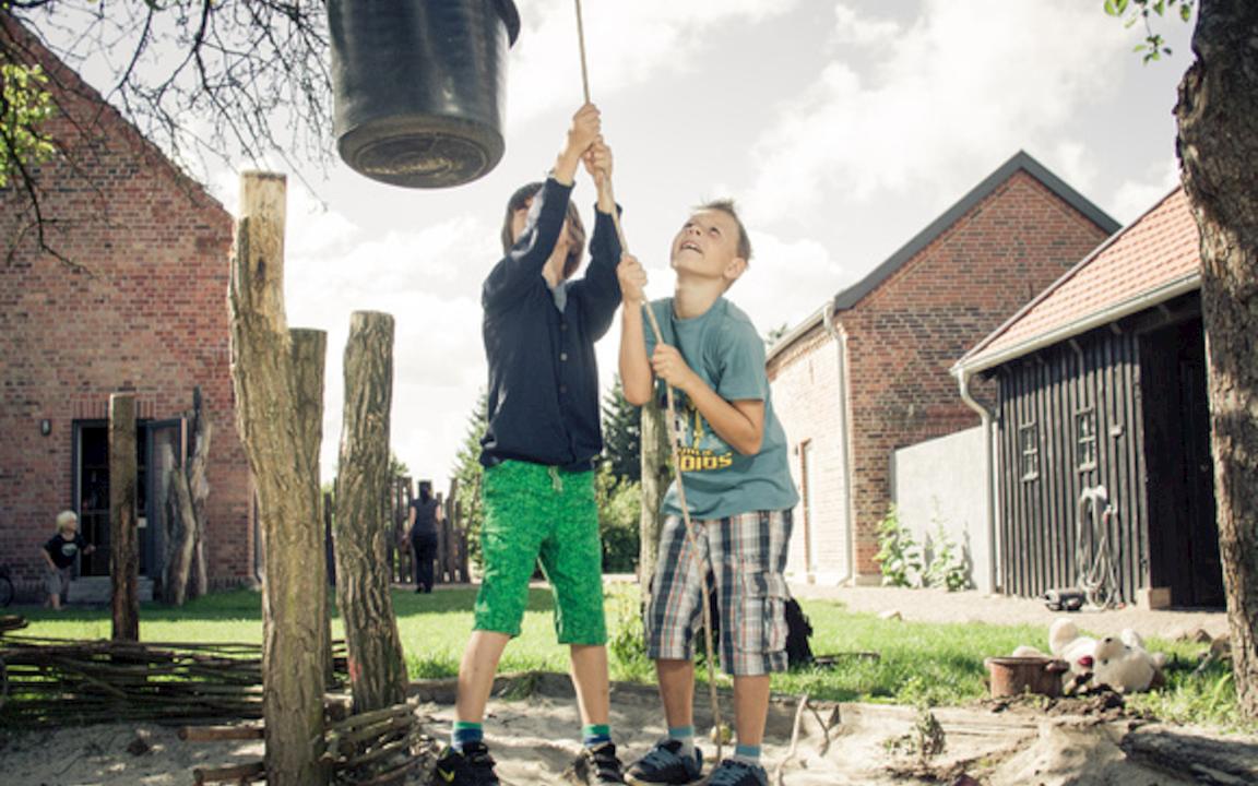 Auch heute noch ist die alte Büdnerei in einen Wohn- und einen Stallteil gegliedert. Wenn die Schafe am Abend von der Wiese zurückkehren, können Sie sie mit Ihren Kindern noch ein wenig beobachten: Aus der Dielenwohnung, dem „Olldendeil“ und vom Flur aus haben Sie exklusive und dabei völlig geruchsfreie Einblicke in den „Schöpstall“. Danach heißt es für die kleinen Gäste von Olldendeil, Dielen- und Dachgeschosswohnungen: Ab in die gemütlichen Alkovenbetten! Putzmunter ziehen sie am nächsten Tag wieder los, z.B. durch den großen Garten oder in das „Kinnerhus“, dessen eine Hälfte ein Spielbereich ist, während die andere Seite von den Schafen bewohnt wird. Das Besondere: Über den Dachboden und eine Strickleiter können die Kinder ihre „Nachbarn“ begrüßen. Die Eltern schlummern nach einem Besuch in der Gartensauna auf einer der geschützten Liegen im Freien. Am Lagerfeuer, beim Grillen und Plaudern mit anderen Familien klingt so mancher Urlaubstag aus.