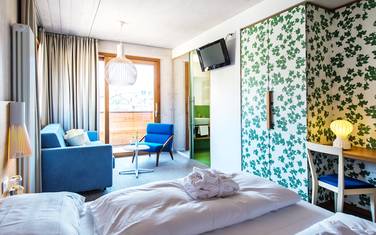 Im Kinderbuch-Klassiker Momo kämpft die kleine Titelheldin gegen fiese Zeit-Diebe, im Alltag geht es Familien nicht anders, sagen Ihre Gastgeber Karin und Arnold. Darum ist ihr Hotelkonzept konsequent auf gemeinsame Zeit ausgerichtet, genauer: auf gemeinsame Erlebnisse von Eltern mit ihren Kindern. Dass der äußere Rahmen dafür im Entdecker Hotel schick und komfortabel ist, zeigt sich auf den ersten Blick, besondere Ideen auf den zweiten. Die Familiensauna mit separaten Familienkabinen zum Beispiel, samt Spielgeräten in der Holzwand. Die hoteleigene Werkstatt, in der Eltern mit ihren Kindern unter fachkundiger Hilfe tischlern, schnitzen oder malen. Die extrabreite Rutsche in der Wasserwelt, auf der die ganze Familie nebeneinander passt. Und die 2,80 m breiten Betten in den Kuschelzimmern, wo Eltern und ein Kind im geräumigen Miteinander nächtigen.