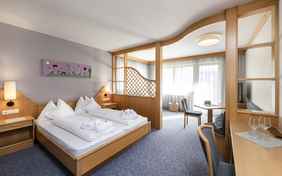 Ihr Ferienzuhause hört ganz auf die Bedürfnisse von Eltern und Kindern. Kleine Gäste begrüßt es mit offenen Armen, davon zeugen etwa die engagierte Kinderbetreuung und drei helle Spielzimmer. In der Hotelstube erwartet Sie jeden Morgen ein reichhaltiges Frühstücksbuffet mit Südtiroler Spezialitäten. Alle Zutaten Ihrer Verwöhnpension stammen auch nachmittags und abends aus der Region. Kinder können sich ganztägig an frischen Fruchtsäften bedienen und einmal pro Woche bereiten sie in der Kinderbetreuung ihr Mittagessen selbst zu. Orte der Entspannung sind das kleine Schwimmbad (4 × 9 m) und die Familiensauna des Hotels.