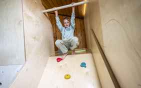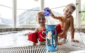 Ein Spieleparadies für Kinder - denn eine ganze Etage für sich haben nur die jungen Gäste: 350 m² im Stammhaus sind für Kinder und Jugendliche reserviert. „Zwärg Bartlis Reich“ bietet eine Spielterrasse und verschiedene Spielräume. Sogar ein echter Baum schlägt hier Wurzeln. An ihm und der Kletterwand lässt es sich wunderbar kraxeln. Für Begeisterung sorgt auch die Alphütte aus Holz mit Heuboden.
