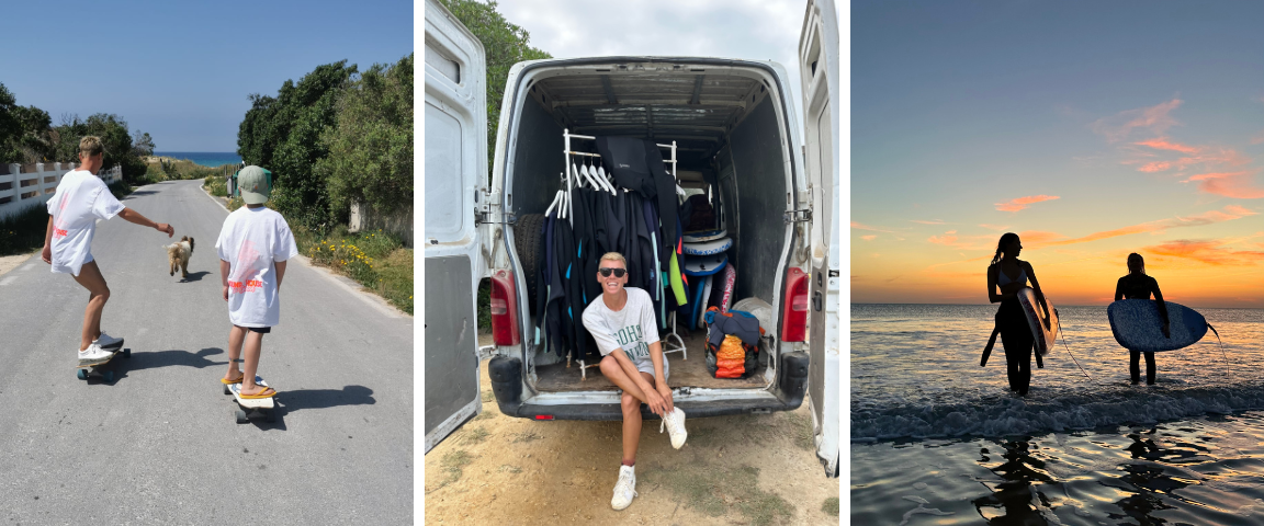 Für mich persönlich gibt es viele unvergessliche Surfsessions. Einmal waren wir im Wasser und konnten im Horizont Delfine sehen. Das war wirklich ein magisches Erlebnis. Diese Verbundenheit, die man zu dem Ozean und der Natur spürt, ist einfach einzigartig. Surfen ist für mich eine der besten Erfahrungen, die ich machen durfte, und ich bin dankbar, dass ich diese Leidenschaft in der Surfschule an andere weitergeben kann.