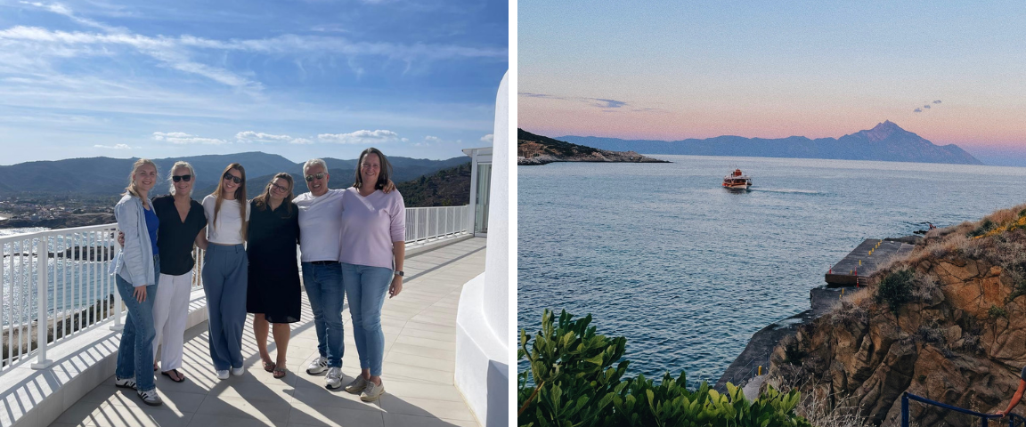 Wir haben uns „klassisch“ in Sarti kennengelernt: Grigorios hat dort gearbeitet, ich Urlaub gemacht. Nachdem ich fast zwei Jahre später beschloss, nach Sarti zu ziehen und meine Arbeit und meinen Wohnort Hamburg aufzugeben, begannen wir selbständig im Tourismus zu arbeiten. Unser erstes Standbein war die Autovermietung „MasterCar“, die immer noch existiert und inzwischen hauptsächlich von Grigorios Geschwistern geleitet wird. Später im Jahr 1999 kam das Likithos hinzu: das war unser Start mit vamos. Und dann nach und nach in den vielen Jahren der Zusammenarbeit mit vamos die Villa Kalypso, das Blue Senses und das Cavo del Sol.