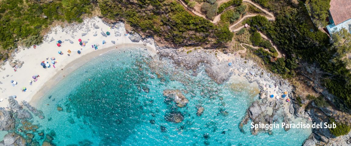 Eine weitläufige Bucht, die viel Abwechslung bietet: Wer schnorcheln oder paddeln möchte, findet hier ideale Bedingungen. Trotzdem bleibt der Strand entspannt, besonders morgens oder ab spätem Nachmittag. Ganz in der Nähe von Zambrone befindet sich außerdem der Bio Agriturismo Pirapora.